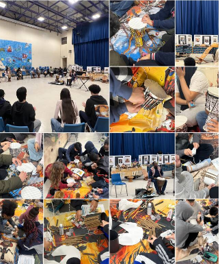 Le lundi 23 février 2025, les élèves de 7e et 8e année de l’École secondaire Étienne-Brûlé ont vécu une expérience immersive sur la culture africaine dans le cadre du Mois de l’histoire des Noirs, grâce au Centre DABU LaCase. Dans un décor inspiré d’un village traditionnel, ils ont fabriqué leur propre djembé et découvert sa signification culturelle en Afrique de l’Ouest. Les élèves ont aussi participé à la construction d’une case de campement symbolisant l’accueil et la vie communautaire. L’activité s’est poursuivie avec un atelier de percussion animé par l’artiste Siaka Diabaté, suivi de démonstrations de balafon et de kora. Cette journée riche en découvertes a offert aux jeunes une immersion culturelle marquante, alliant apprentissage, créativité et fierté identitaire. | On Monday, February 23, 2025, Grade 7 and 8 students at École secondaire Étienne-Brûlé participated in an immersive African cultural experience as part of Black History Month, thanks to the DABU LaCase Centre. In a setting inspired by a traditional village, they crafted their own djembe drums and learned about its cultural significance in West Africa. The students also helped build a traditional encampment hut, symbolizing hospitality and community life. The activity continued with a percussion workshop led by artist Siaka Diabaté, followed by balafon and kora demonstrations. This enriching day provided the students with a memorable cultural immersion, combining learning, creativity, and a sense of cultural pride.